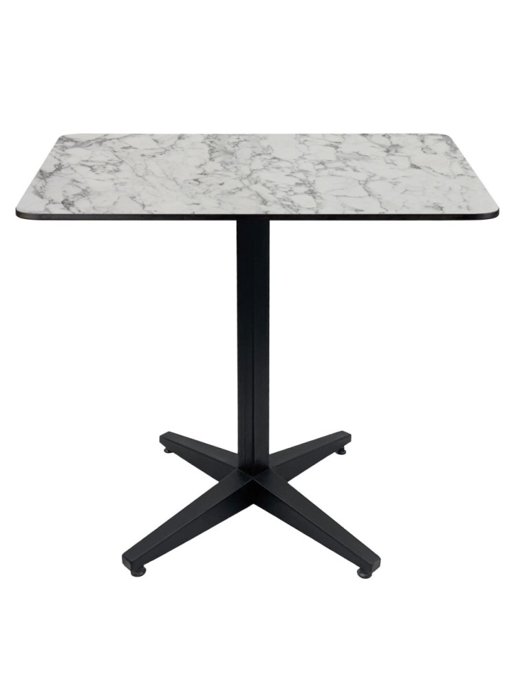 Стильный и практичный стол с металлическим основанием и столешницей из монолитного компакт-пластика HPL (толщина 12 мм). Этот материал известен своей прочностью, устойчивостью к перепадам температур и влаге, не требует специального ухода и идеально подходит как для использования в помещении, так и на открытых площадках — например, на летней террасе ресторана.