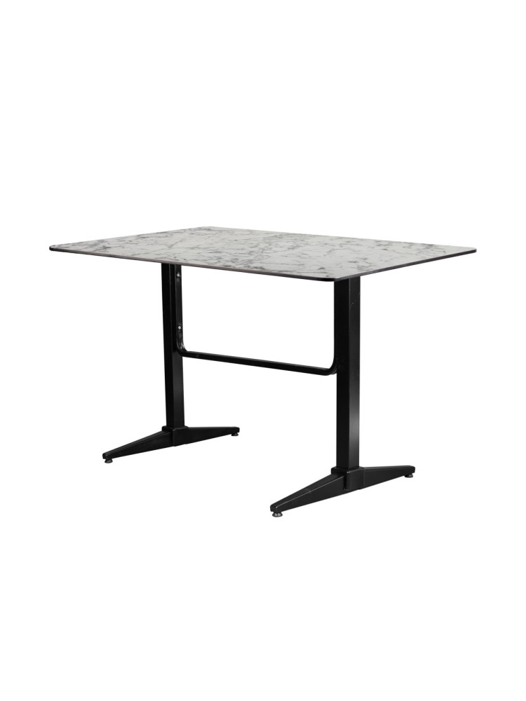 Основание стола - метал. Столешница - современный монолитный компакт-пластик HPL, толщиной 12 мм. Это долговечный материал, устойчивый к перепадам температур, влаге, не требующий специального ухода. Он подходит даже для использования на открытом пространстве, например, на летней площадке ресторана.