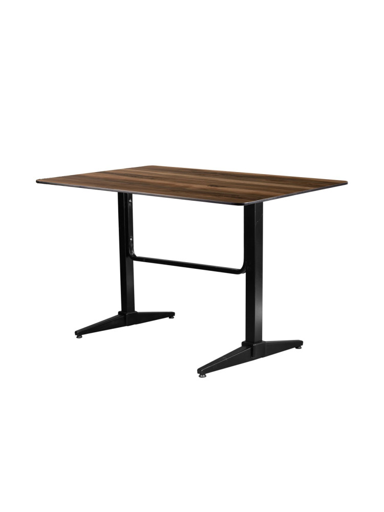 Стильный и практичный стол с металлическим основанием и столешницей из монолитного компакт-пластика HPL (толщина 12 мм). Этот материал известен своей прочностью, устойчивостью к перепадам температур и влаге, не требует специального ухода и идеально подходит как для использования в помещении, так и на открытых площадках — например, на летней террасе ресторана.